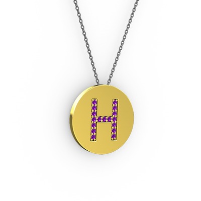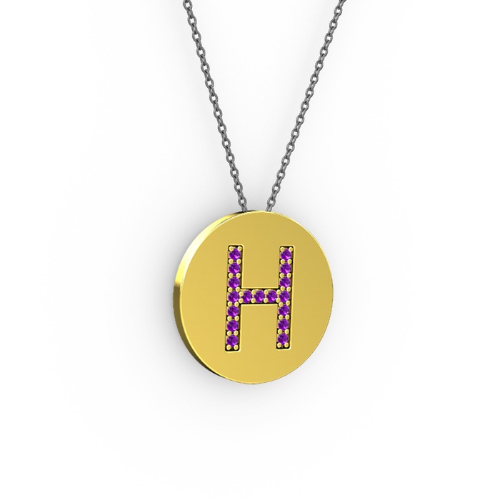Ametist 925 ayar altın kaplama gümüş kolye (40 cm gümüş rolo zincir)