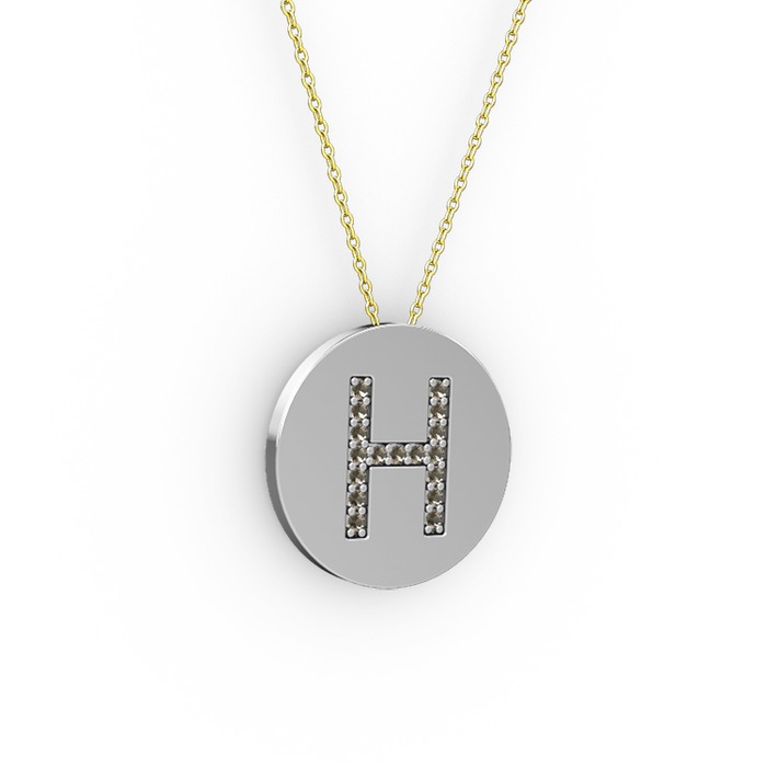 Dumanlı kuvars 14 ayar beyaz altın kolye (40 cm altın rolo zincir)