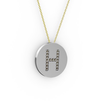 Dumanlı kuvars 14 ayar beyaz altın kolye (40 cm gümüş rolo zincir)