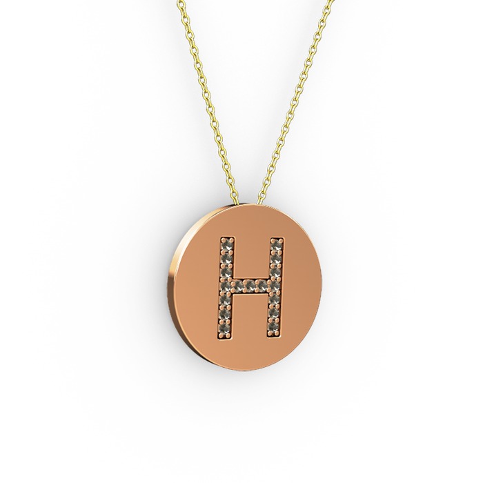 Dumanlı kuvars 8 ayar rose altın kolye (40 cm altın rolo zincir)