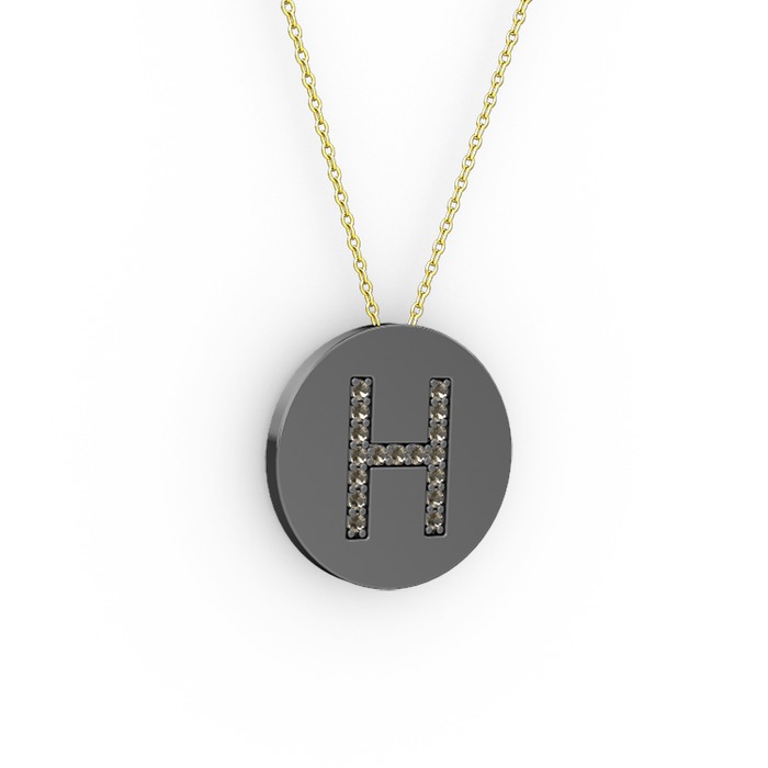 Dumanlı kuvars 925 ayar siyah rodyum kaplama gümüş kolye (40 cm altın rolo zincir)