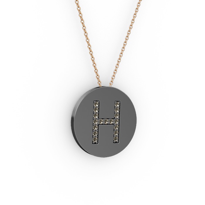 Dumanlı kuvars 925 ayar siyah rodyum kaplama gümüş kolye (40 cm rose altın rolo zincir)