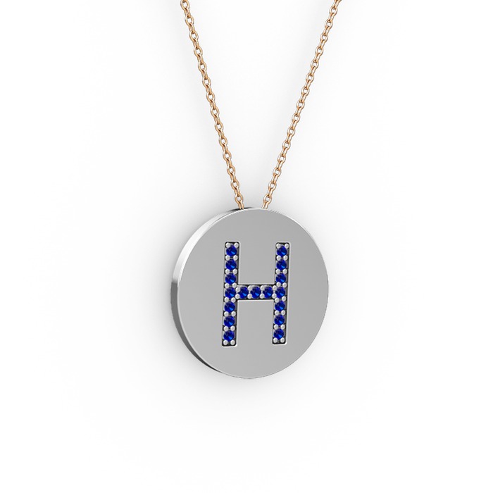 Lab safir 14 ayar beyaz altın kolye (40 cm gümüş rolo zincir)