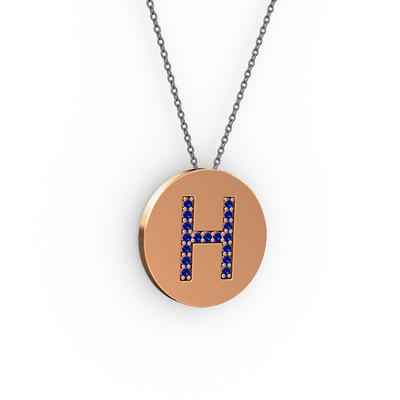 Lab safir 14 ayar rose altın kolye (40 cm gümüş rolo zincir)