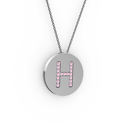 Pembe kuvars 14 ayar beyaz altın kolye (40 cm gümüş rolo zincir)