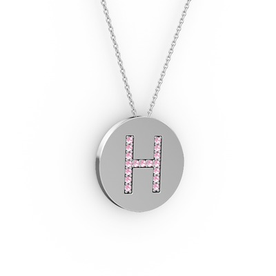 Pembe kuvars 8 ayar beyaz altın kolye (40 cm beyaz altın rolo zincir)