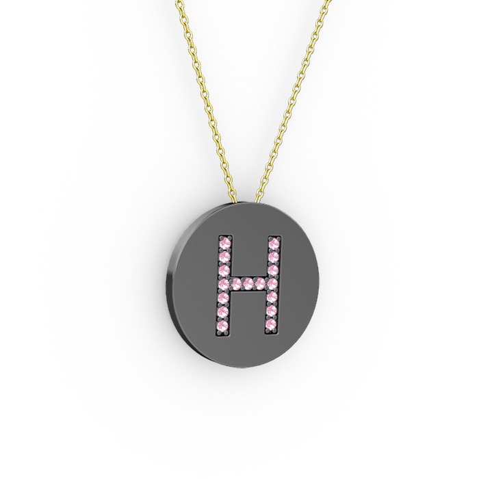 Pembe kuvars 925 ayar siyah rodyum kaplama gümüş kolye (40 cm altın rolo zincir)