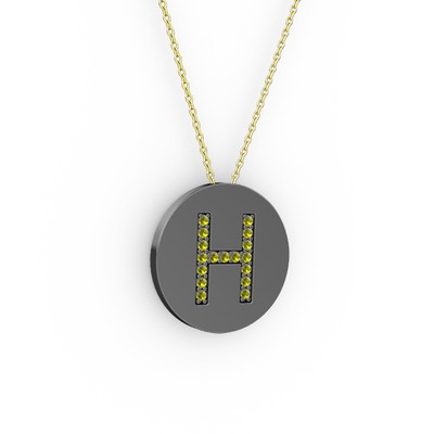 Peridot 925 ayar siyah rodyum kaplama gümüş kolye (40 cm gümüş rolo zincir)