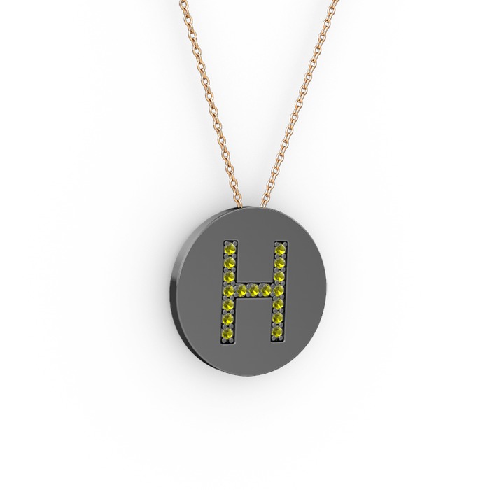 Peridot 925 ayar siyah rodyum kaplama gümüş kolye (40 cm rose altın rolo zincir)