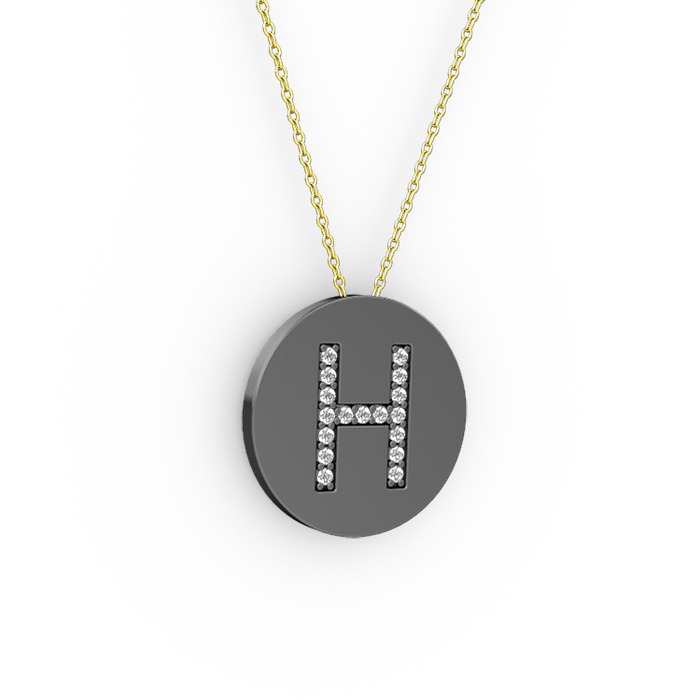 Pırlanta 925 ayar siyah rodyum kaplama gümüş kolye (0.1496 karat, 40 cm altın rolo zincir)