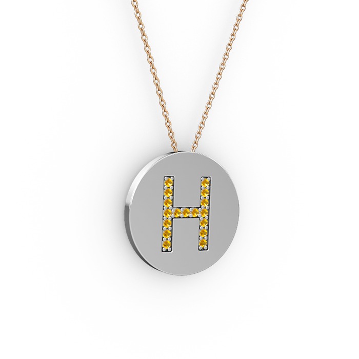 Sitrin 14 ayar beyaz altın kolye (40 cm gümüş rolo zincir)