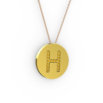 Sitrin 18 ayar altın kolye (40 cm rose altın rolo zincir)
