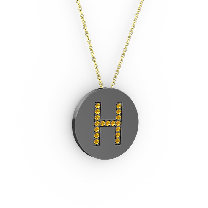 Sitrin 925 ayar siyah rodyum kaplama gümüş kolye (40 cm altın rolo zincir)