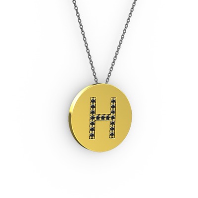 Siyah zirkon 14 ayar altın kolye (40 cm gümüş rolo zincir)
