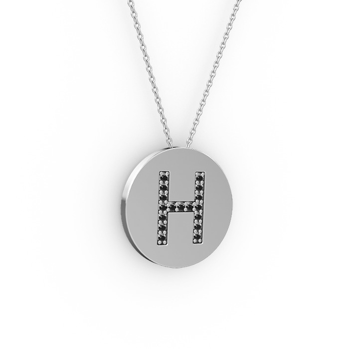Siyah zirkon 14 ayar beyaz altın kolye (40 cm beyaz altın rolo zincir)