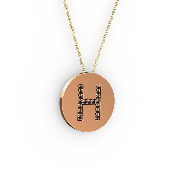 Siyah zirkon 14 ayar rose altın kolye (40 cm altın rolo zincir)