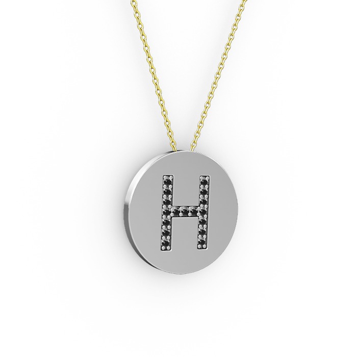 Siyah zirkon 8 ayar beyaz altın kolye (40 cm altın rolo zincir)