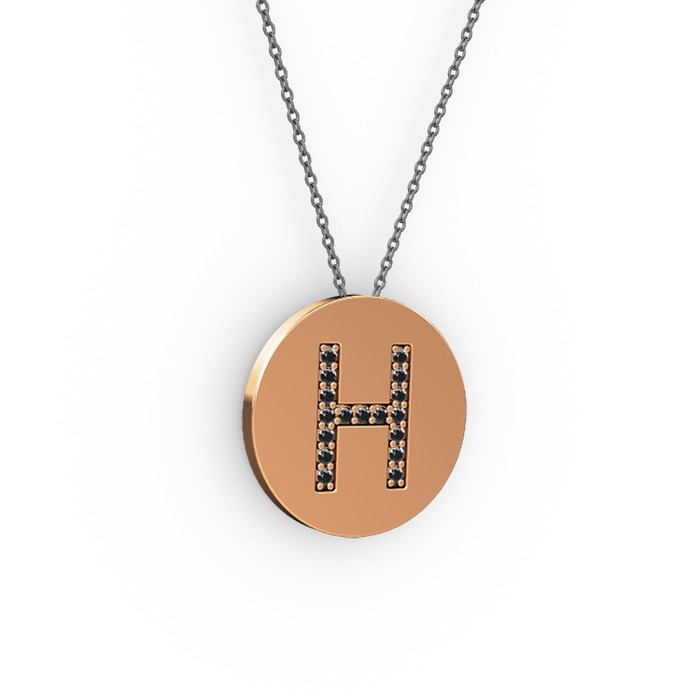 Siyah zirkon 8 ayar rose altın kolye (40 cm gümüş rolo zincir)