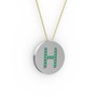 H Baş Harf Kolye - Yeşil kuvars 8 ayar beyaz altın kolye (40 cm altın rolo zincir)