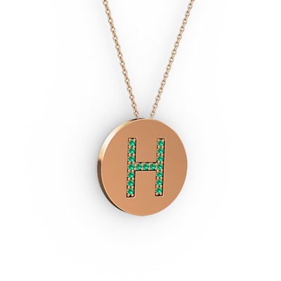 Yeşil kuvars 8 ayar rose altın kolye (40 cm rose altın rolo zincir)
