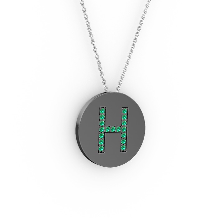 Yeşil kuvars 925 ayar siyah rodyum kaplama gümüş kolye (40 cm gümüş rolo zincir)