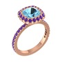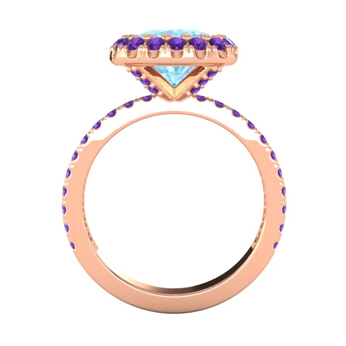 Akuamarin ve ametist 14 ayar rose altın yüzük