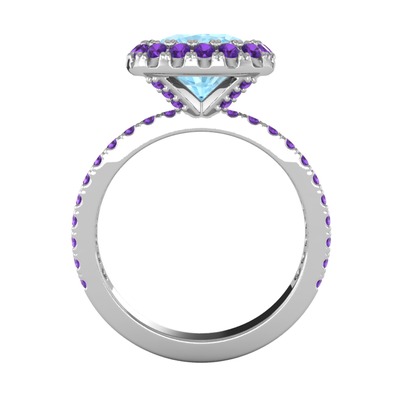 Akuamarin ve ametist 925 ayar gümüş yüzük