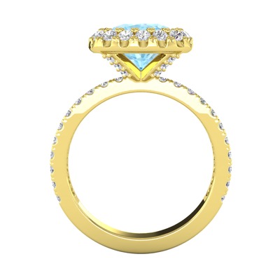 Akuamarin ve beyaz zirkon 18 ayar altın yüzük