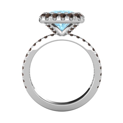 Akuamarin ve dumanlı kuvars 18 ayar beyaz altın yüzük