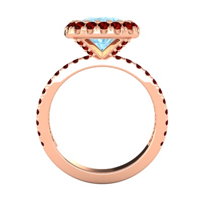 Akuamarin ve garnet 14 ayar rose altın yüzük