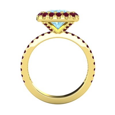Akuamarin ve kök yakut 925 ayar altın kaplama gümüş yüzük