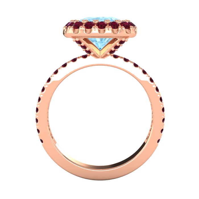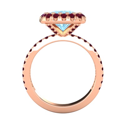 Akuamarin ve kök yakut 925 ayar rose altın kaplama gümüş yüzük