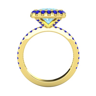 Akuamarin ve lab safir 925 ayar altın kaplama gümüş yüzük