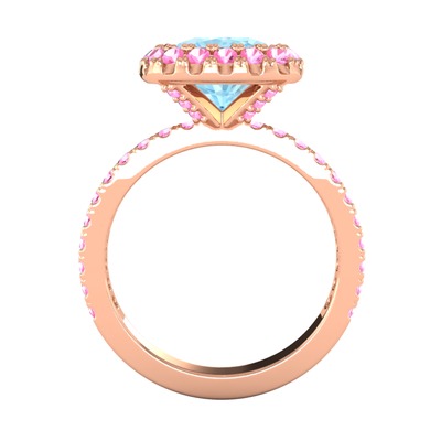 Akuamarin ve pembe kuvars 14 ayar rose altın yüzük