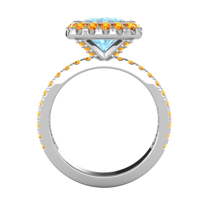 Akuamarin ve sitrin 8 ayar beyaz altın yüzük