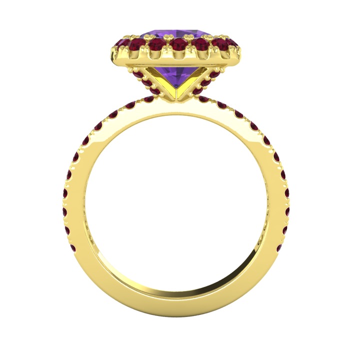Ametist ve kök yakut 925 ayar altın kaplama gümüş yüzük