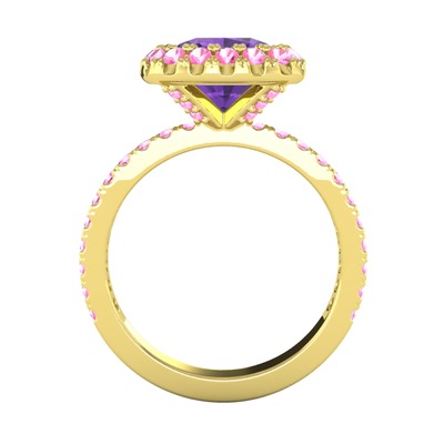 Ametist ve pembe kuvars 14 ayar altın yüzük
