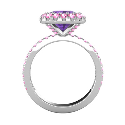 Ametist ve pembe kuvars 8 ayar beyaz altın yüzük