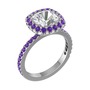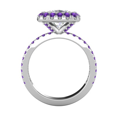 Beyaz zirkon ve ametist 14 ayar beyaz altın yüzük