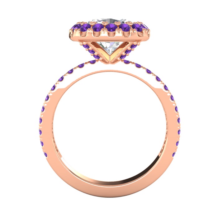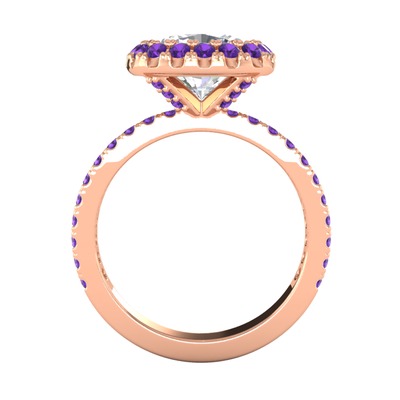 Beyaz zirkon ve ametist 8 ayar rose altın yüzük