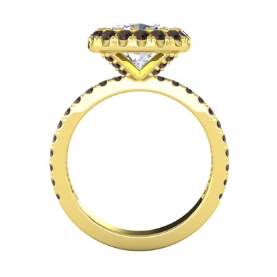 Beyaz zirkon ve dumanlı kuvars 14 ayar altın yüzük
