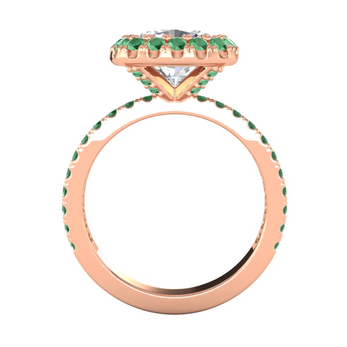 Beyaz zirkon ve kök zümrüt 18 ayar rose altın yüzük