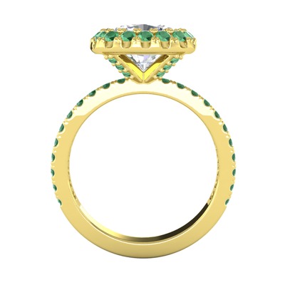Beyaz zirkon ve kök zümrüt 8 ayar altın yüzük