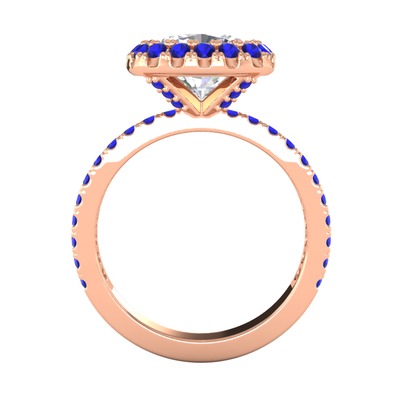Beyaz zirkon ve lab safir 18 ayar rose altın yüzük