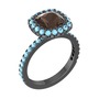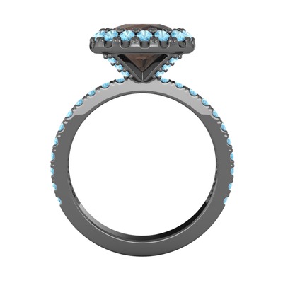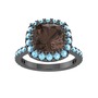 Dumanlı kuvars ve akuamarin 925 ayar siyah rodyum kaplama gümüş yüzük