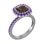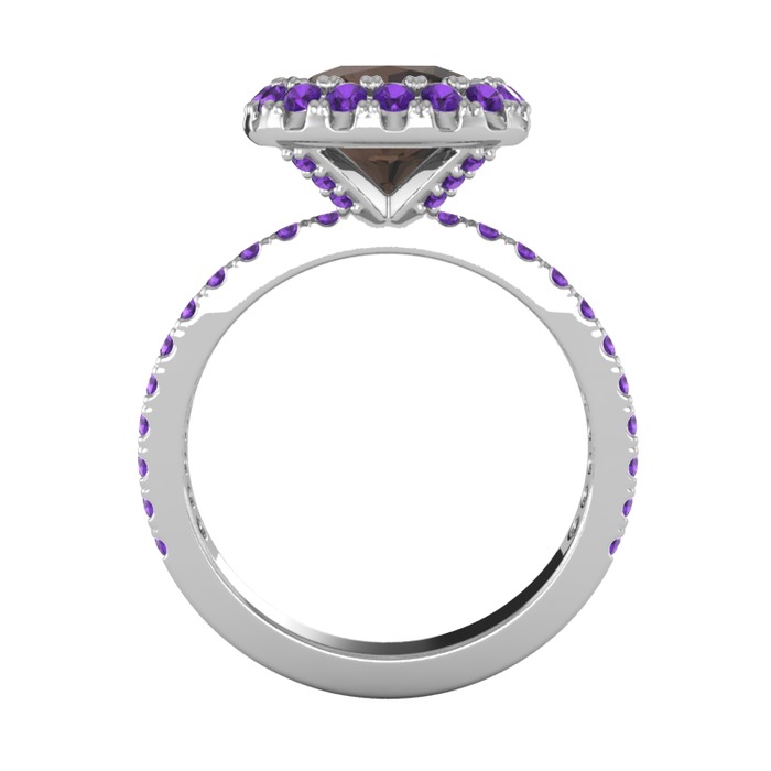 Dumanlı kuvars ve ametist 8 ayar beyaz altın yüzük