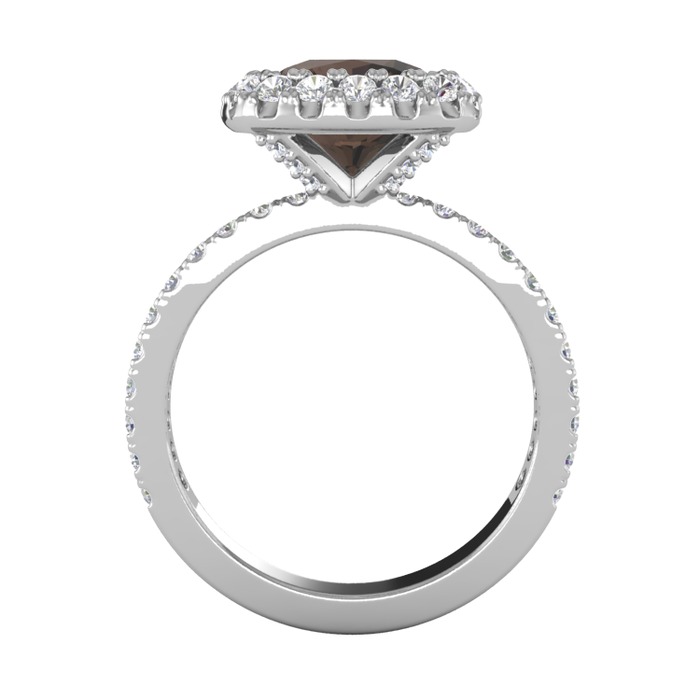 Dumanlı kuvars ve beyaz zirkon 18 ayar beyaz altın yüzük