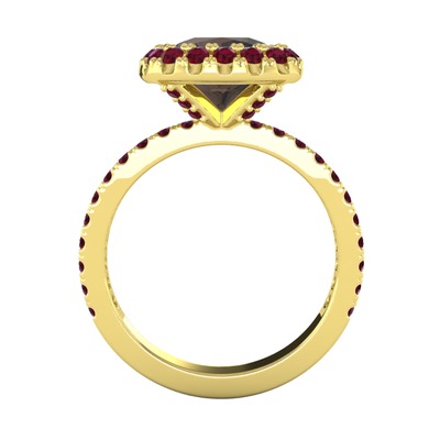 Dumanlı kuvars ve kök yakut 925 ayar altın kaplama gümüş yüzük