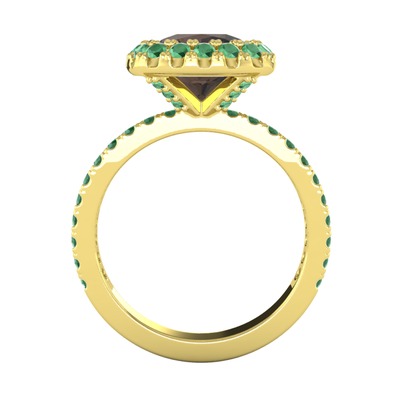 Dumanlı kuvars ve kök zümrüt 925 ayar altın kaplama gümüş yüzük
