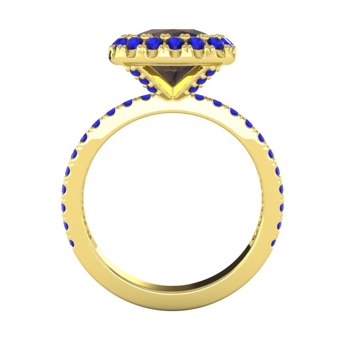 Dumanlı kuvars ve lab safir 8 ayar altın yüzük